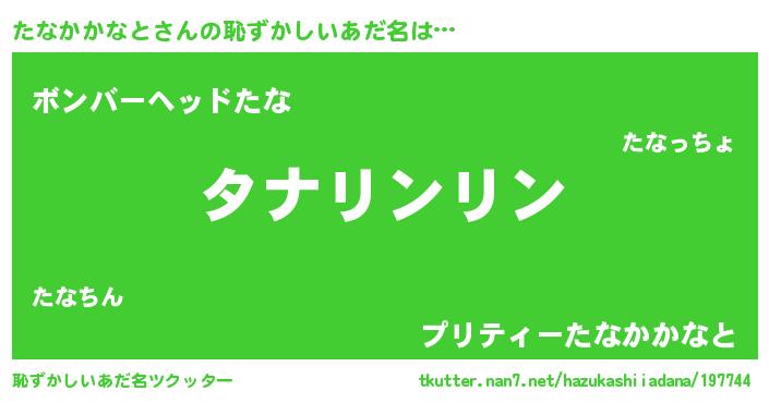 | 男性向けラノベタイトル風あだ名 | 『この素晴らしい世界にたなかかなとを!』 |