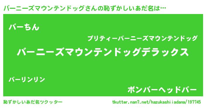 | 男性向けラノベタイトル風あだ名 | 『魔法科高校のバーニーズマウンテンドッグ』 |