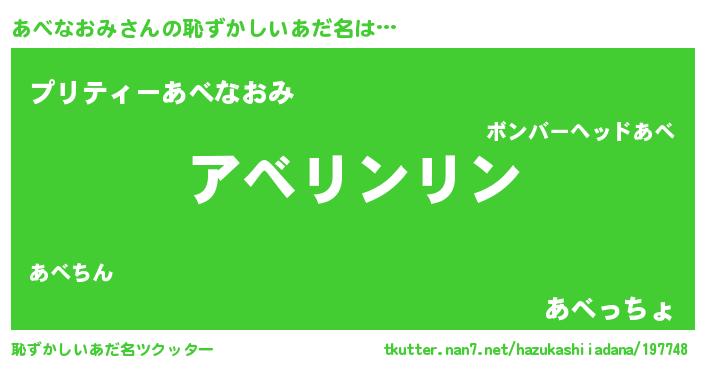 | 意味不明あだ名 | 『とにかく怪しいあべなおみ』 |