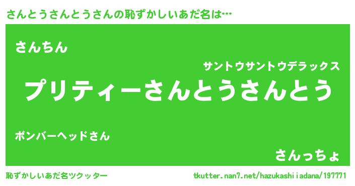 | ヒーロー風カッコイイあだ名 | 『スーパーサントウサントウ』 |