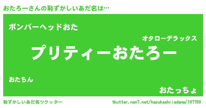 | ヘコむあだ名 | 『おたにゅー』『なまこ酢』『おたお』 |