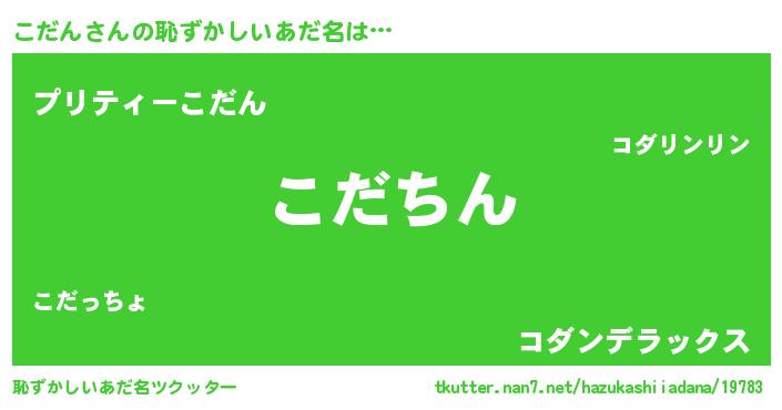 | 意味不明あだ名 | 『永久保存こだん』『ペロリンこだん』 |