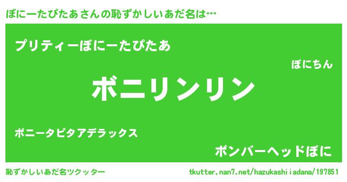 | ポケモン風あだ名 | 『ヒボニータピタア』『ボニチュウ』 |