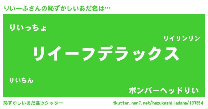 | 意味不明あだ名 | 『自称りいーふ』『りいーふフォーエバー』 |