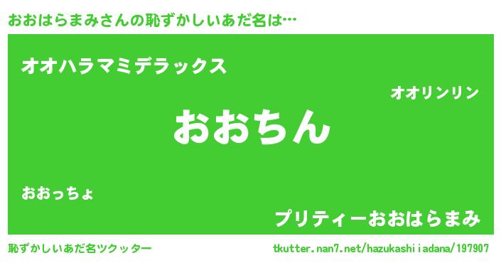 | 意味不明あだ名 | 『永久保存おおはらまみ』 |