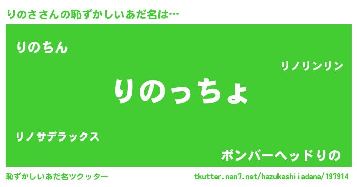 | ヘコむあだ名 | 『豆乳』『りのさ(笑)』『りのを』 |