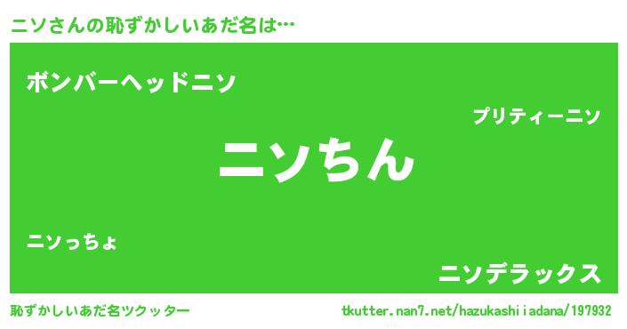 | ヒーロー風カッコイイあだ名 | 『ネオニソ』『慈愛の使者ニソ』 |