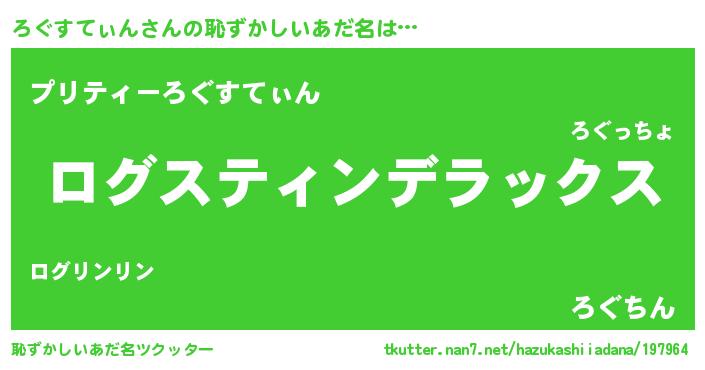 | ヘコむあだ名 | 『ろぐにー』『ろぐすてぃん(小並感)』 |