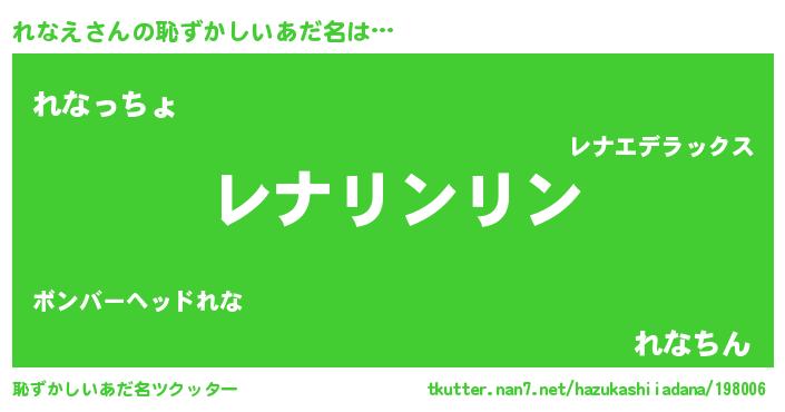 | 男性向けラノベタイトル風あだ名 | 『れなえの嫁は女の子じゃないと思った?』 |