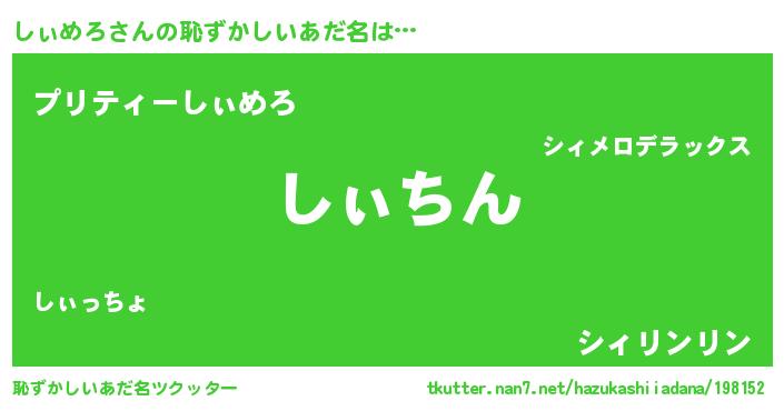 | ヘコむあだ名 | 『しぃめろ(震え声)』『しぃっふぃ~』 |