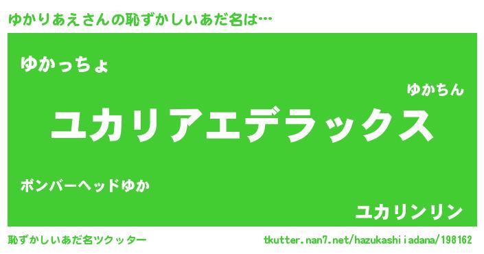 | 意味不明あだ名 | 『自称ゆかりあえ』『永久保存ゆかりあえ』 |