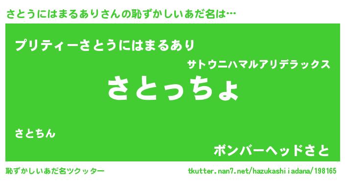 | ヘコむあだ名 | 『酢こんぶ』『さともー』『さとっ子』 |
