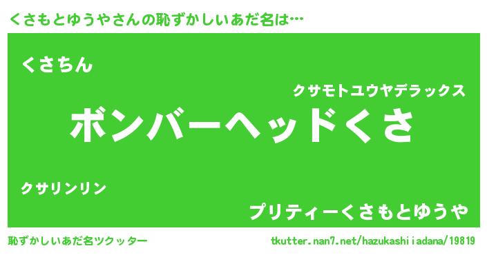| ヘコむあだ名 | 『くさもとゆうや(笑)』『くさにー』 |