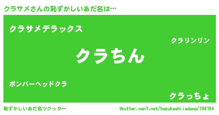 | 意味不明あだ名 | 『永久保存クラサメ』『自称クラサメ』 |