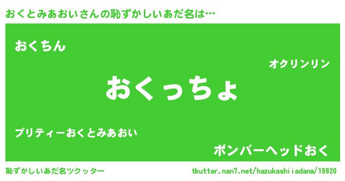 | 男性向けラノベタイトル風あだ名 | 『この素晴らしい世界におくとみあおいを!』 |