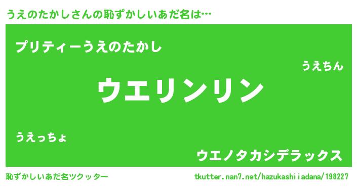 | 意味不明あだ名 | 『とにかく怪しいうえのたかし』 |