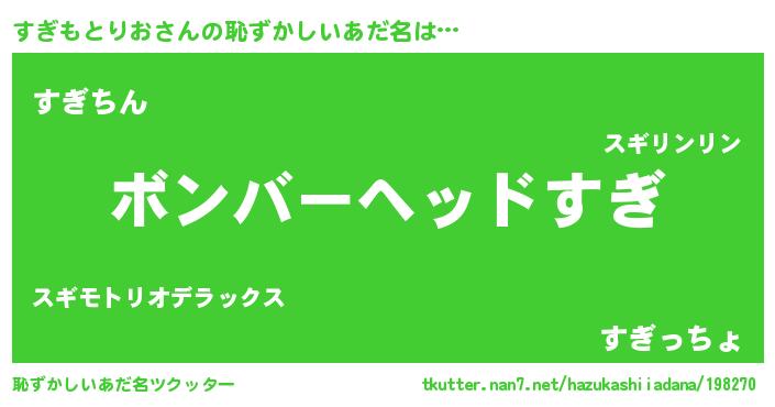 | ヒーロー風カッコイイあだ名 | 『天空の使者すぎもとりお』 |