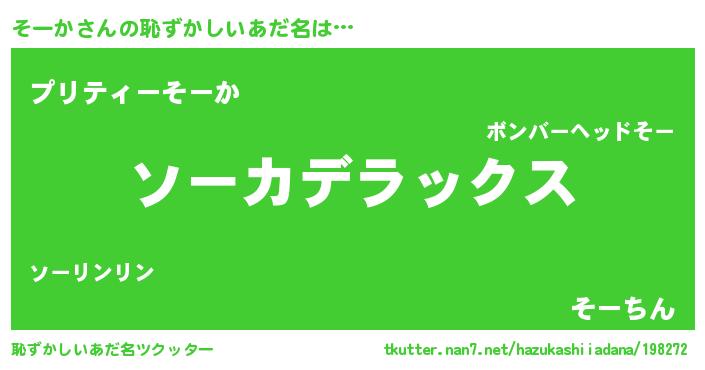 | ヒーロー風カッコイイあだ名 | 『仮面ソーダー』『究極戦士ソーカ』 |