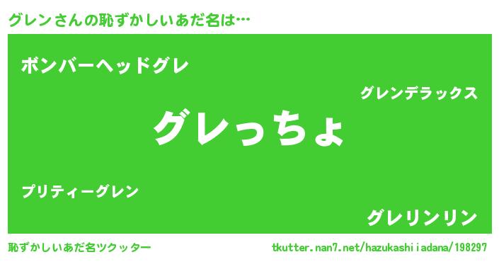| 女子向けラノベタイトル風あだ名 | 『グレンの雑貨屋さん』『グレン恋絵巻』 |