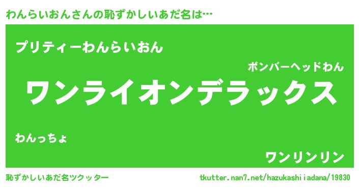 | 意味不明あだ名 | 『住所不定無職わんらいおん(11歳)』 |