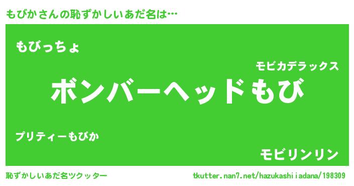 | 意味不明あだ名 | 『眠気覚ましガムもびか味』『自称もびか』 |