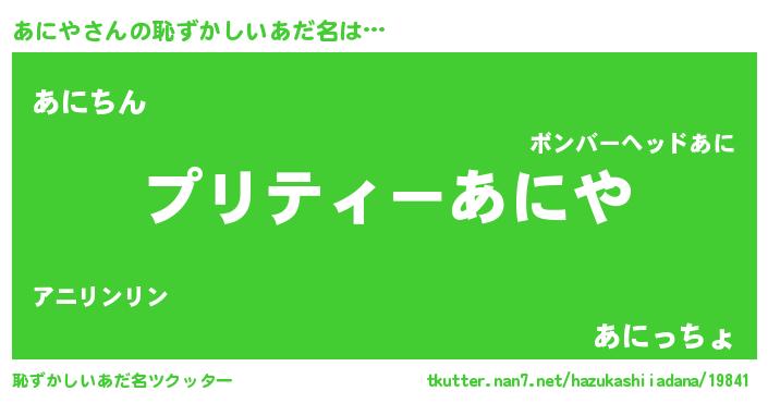 | 胡散臭い通販商品みたいなあだ名 | 『モテモテ間違いなし霊験あらたかなお札…その名も「あにや」』 |