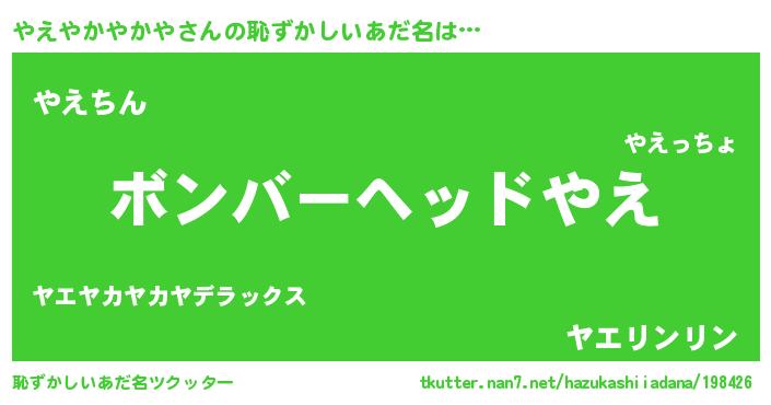 | ヘコむあだ名 | 『やえやかやかや(笑)』『やえ太郎』 |