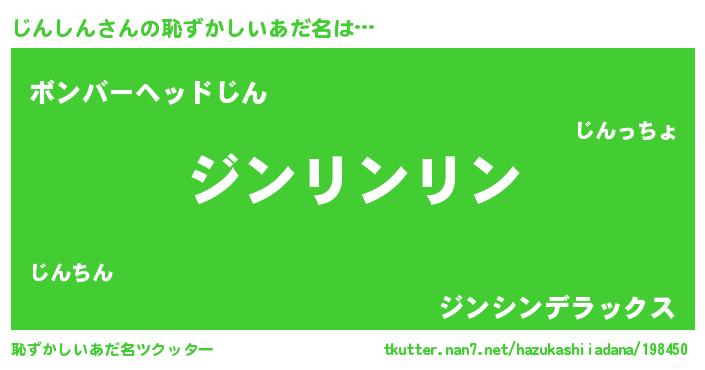| ヘコむあだ名 | 『じん太郎』『つくし』『じんにゅー』 |