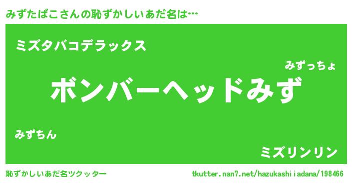 | ヒーロー風カッコイイあだ名 | 『仮面ミズダー』『愛の使者みずたばこ』 |