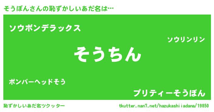 | 意味不明あだ名 | 『永久保存そうぼん』『自称そうぼん』 |