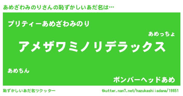 | 男性向けラノベタイトル風あだ名 | 『アメザワミノリスレイヤー』 |