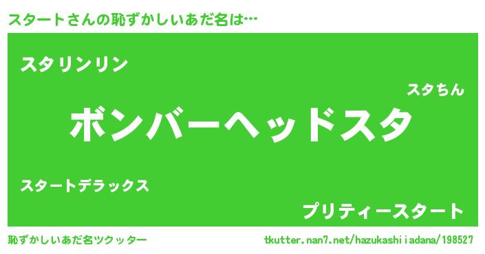 | ヒーロー風カッコイイあだ名 | 『正義の使者スタート』『魔戒騎士スタ』 |