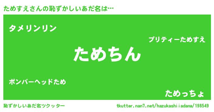 | ヘコむあだ名 | 『ためすえ(苦笑)』『ためぷりん』 |