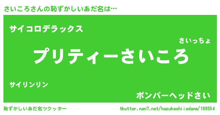 | 男性向けラノベタイトル風あだ名 | 『さいころの憂鬱』『サイコロスレイヤー』 |