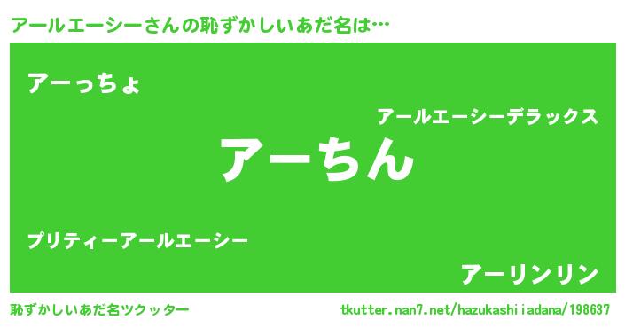 | ヒーロー風カッコイイあだ名 | 『ネオアールエーシー』『魔戒騎士アー』 |