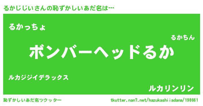 | ヒーロー風カッコイイあだ名 | 『正義の使者るかじじい』『仮面ルカダー』 |