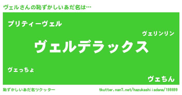 | ヒーロー風カッコイイあだ名 | 『最強戦士ヴェル』『スーパーヴェル』 |