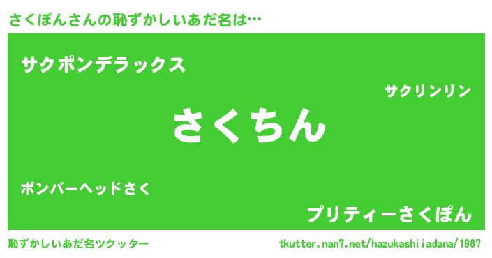 | ヘコむあだ名 | 『さくぽん(震え声)』『さくにゅー』 |