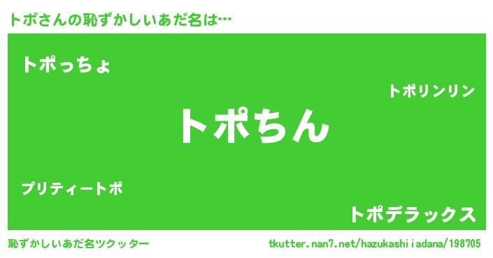| ヘコむあだ名 | 『トポ(笑)』『つくし』『トポっぺ』 |