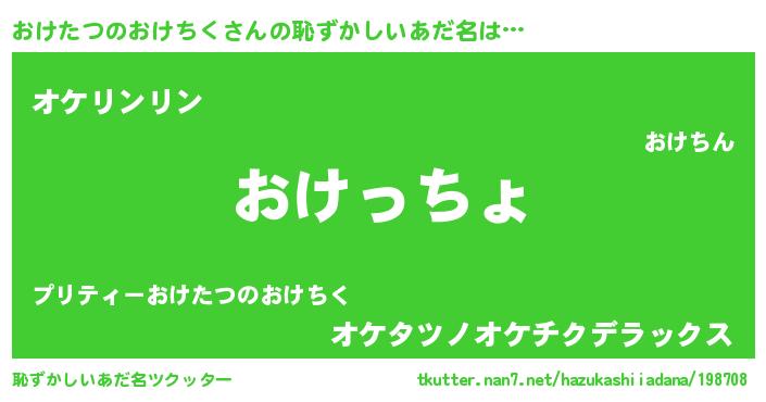 | 意味不明あだ名 | 『住所不定無職おけたつのおけちく(93歳)』 |