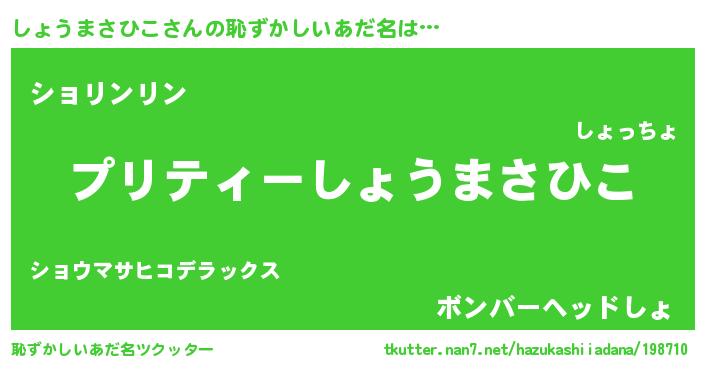 | 男性向けラノベタイトル風あだ名 | 『しょうまさひこの憂鬱』 |