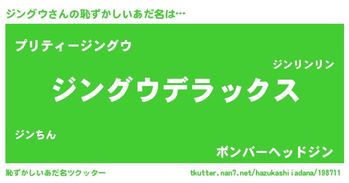 | 男性向けラノベタイトル風あだ名 | 『Re:ジングウから始める異世界生活』 |