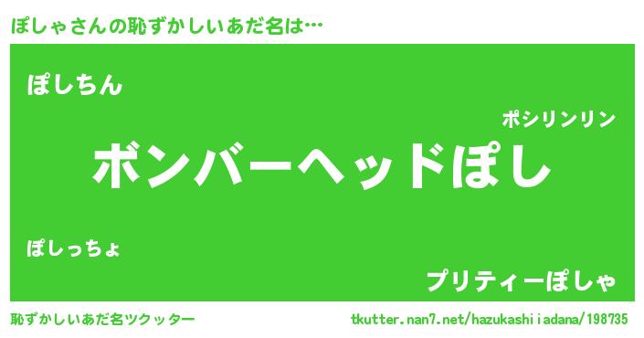 | ヘコむあだ名 | 『ぽしゃ(爆)』『ぽしもー』『ぽしを』 |