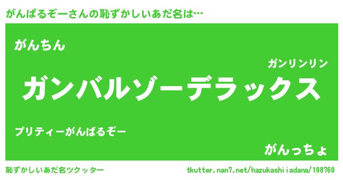 | 男性向けラノベタイトル風あだ名 | 『ガンバルゾースレイヤー』 |