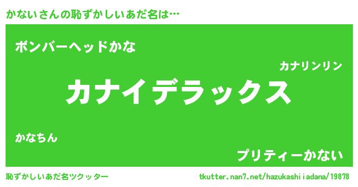 | ヒーロー風カッコイイあだ名 | 『究極戦士カナイ』『慈愛の使者かない』 |