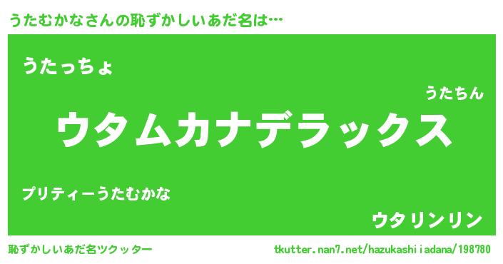 | 意味不明あだ名 | 『自称うたむかな』『永久保存うたむかな』 |