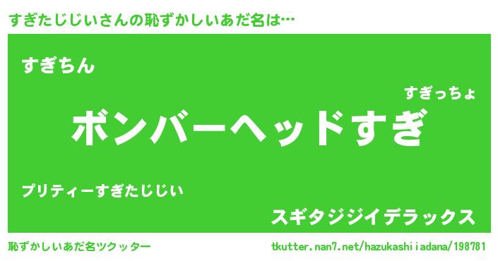 | ヘコむあだ名 | 『すぎたじじい(小並感)』『なまこ酢』 |