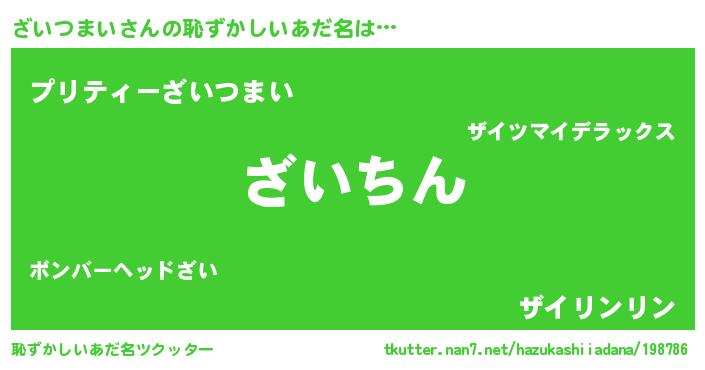 | 意味不明あだ名 | 『永久保存ざいつまい』『自称ざいつまい』 |