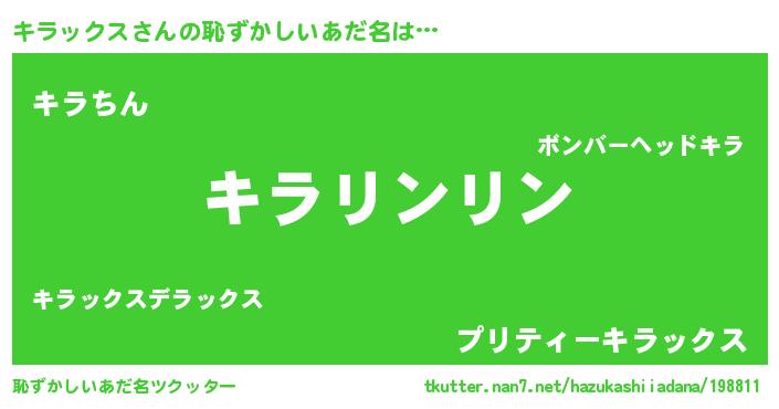 | 意味不明あだ名 | 『とにかく怪しいキラックス』 |