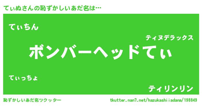 | 意味不明あだ名 | 『眠気覚ましガムてぃぬ味』『自称てぃぬ』 |